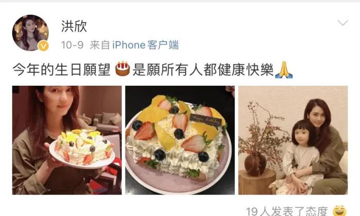 今年10月,洪欣生日,在微博上晒出了和女儿的合影还有蛋糕。