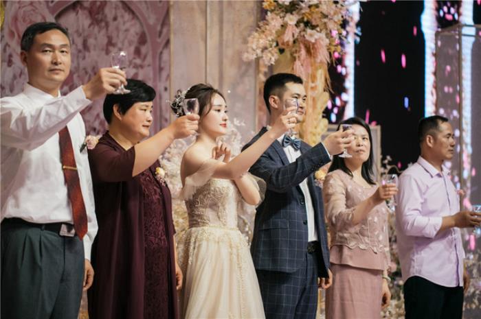 1此时由督导或者伴娘呈上美酒,一家人和全场来宾共进美酒: