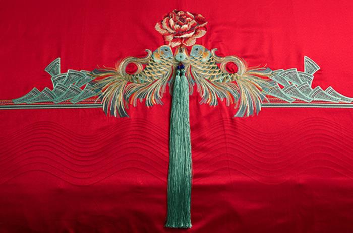 其中最贵的鸾凤和鸣8件套加入了刺绣凤凰,还有时尚绣花