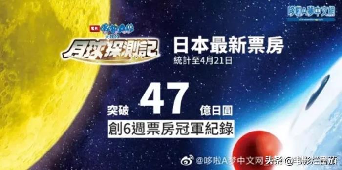 《哆啦A梦:大雄的月球探险记》早些时候在日本上映后就收获了票房、口碑的双丰收,映画开分高达3.98分(满分5分),连续6周拿下日本周末票房榜冠军。