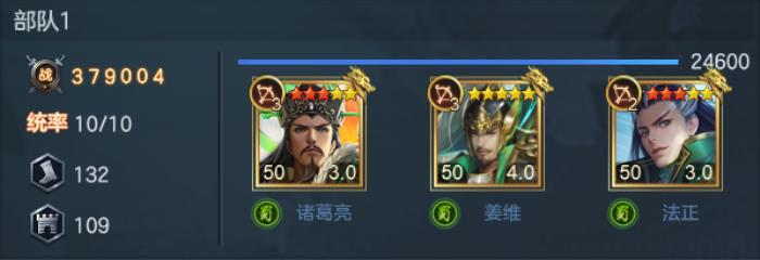 而在战斗能力方面,诸葛亮更是游戏中的佼佼者。依照历史以及传说典故,诸葛亮可以与周瑜、荀彧、庞统、司马懿、于吉、姜维等众多分属不同势力的多名武将组成组合,不仅适用范围广,而且组合强度也都不错。尤其是和姜维组成的“北伐之志”,能够为队伍中军附加“北伐之志”的效果,进一步提升搭配了“速战速决”和“风卷龙啸”技能的诸葛亮的输出能力。