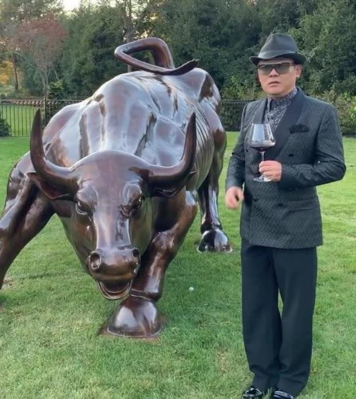 首先是豪宅外面,看着就是一个独栋别墅的感觉。再看看人家的庭院,正中间还会放置一个不小的大牛雕塑。