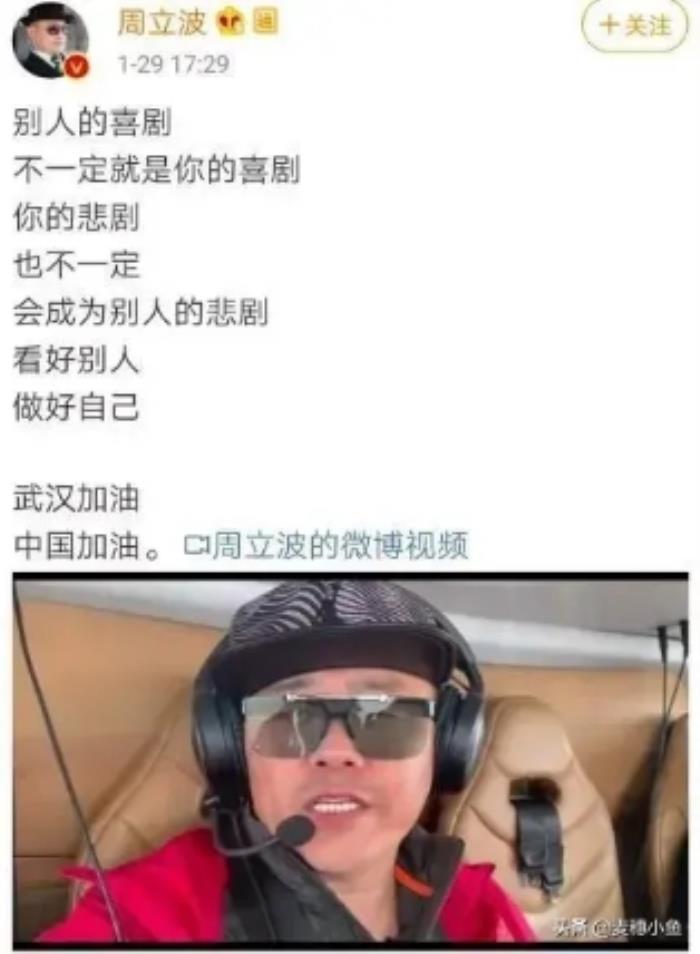 NBA巨星科比不幸遇难,大家沉于悲恸,周立波却不解风情的在个人微博上晒出自己乘坐直升飞机的视频,并写道: