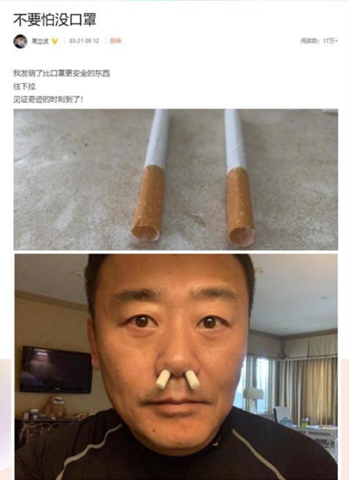 在美国疫情肆虐之时,周立波微博上称,“我发明了比口罩更安全的东西,往下拉,见证奇迹的时刻到了。”