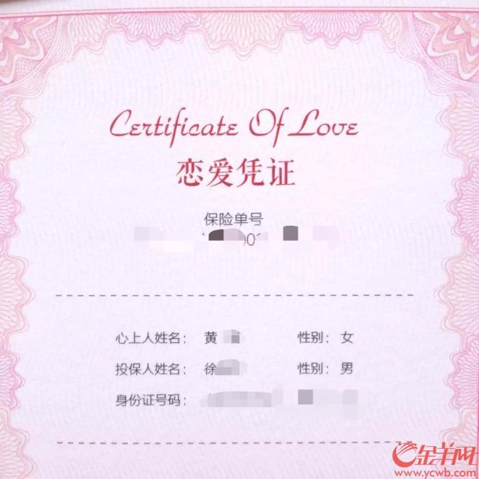 但对于“恋爱保险”失效,王同学并不后悔,“年轻人追求浪漫,‘恋爱保险’只能作为爱情的见证,它更多的是代表一种象征意义”。