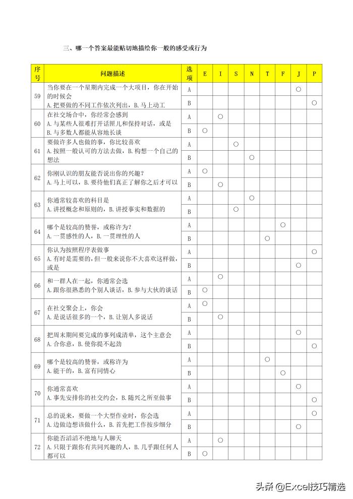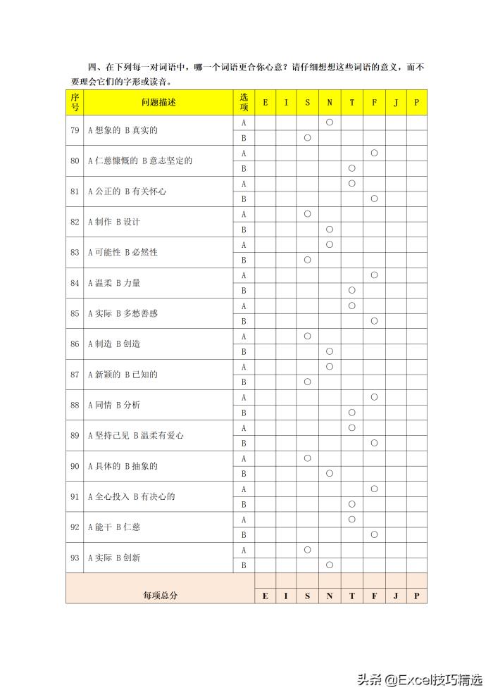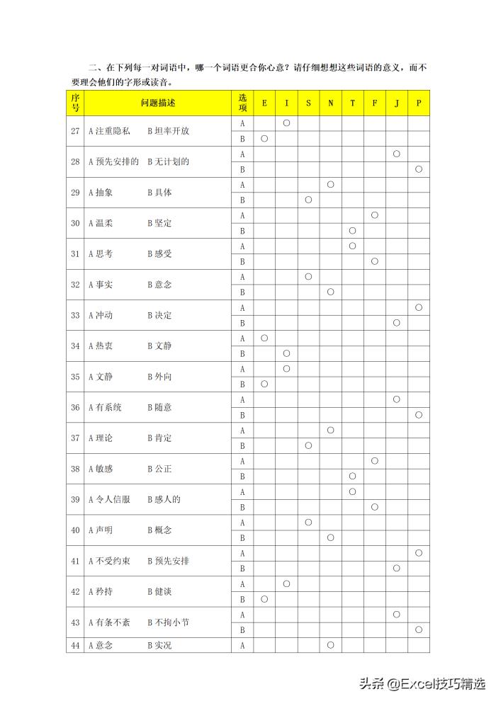5. 参加测试的人员请务必规范(严格按照MBTI测试规范以及实施流程)、诚实、独立地回答问题,只有如此,才能得到有效的结果;
