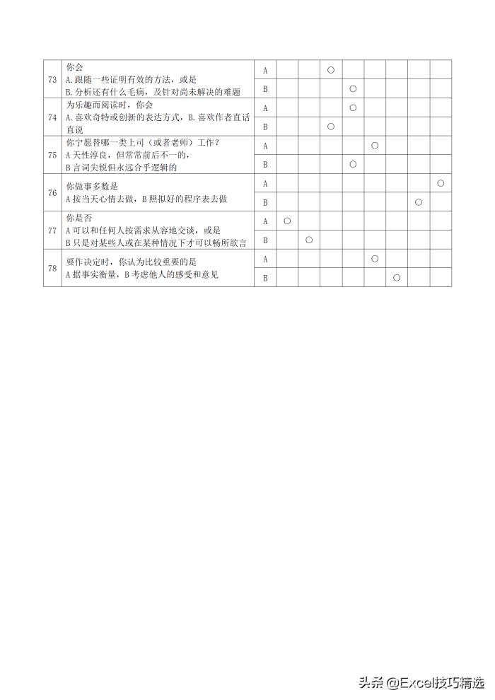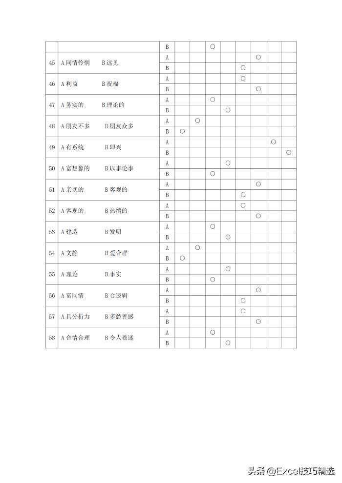 6. 本测试分为四部分,共93题;需时约18分钟。所有题目没有对错之分,请根据自己的实际情况选择。将你选择的A或B所在的 ○涂黑,例如:●