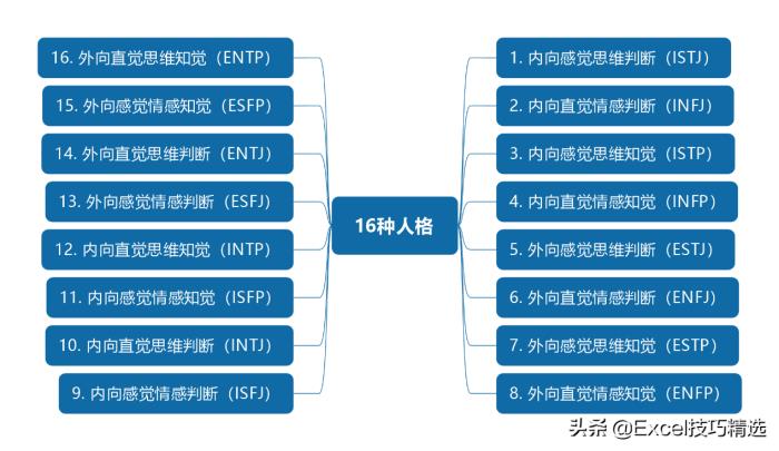 其中两两组合,可以组合成16种人格类型
