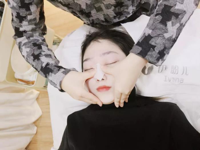 仅靠双手在上半脸按压,需要技师把力道相对集中在鼻梁处。这是非常考验技师功夫的,如果力道不够则效果不足,如果力道太过则会使人感到疼痛。