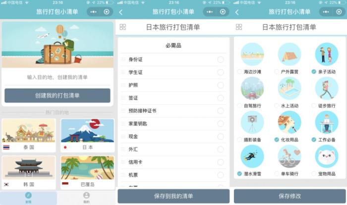 这个就不是腾讯自家做的小程序了,是第三方做的,叫做【旅行打包小清单】