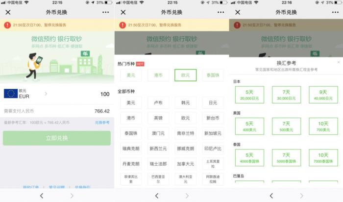 整个流程很简单,关注公众号后进入,选择好币种,以及准备去的银行。然后在约定的时间去银行即可。