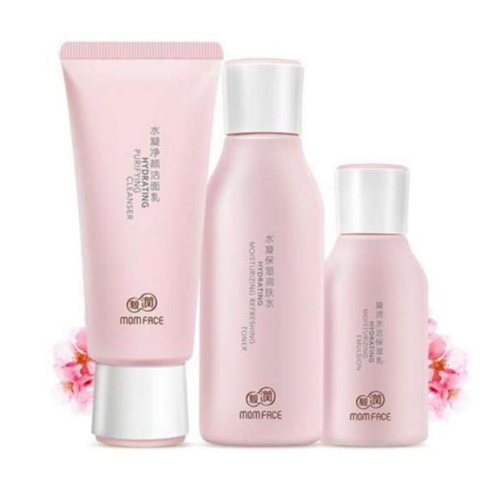 这里特别推荐樱花保湿系列套装,和袋鼠妈妈一样,也是6件套,洁面乳、保湿润肤水、精华露、眼凝露、保湿霜、隔离霜。
