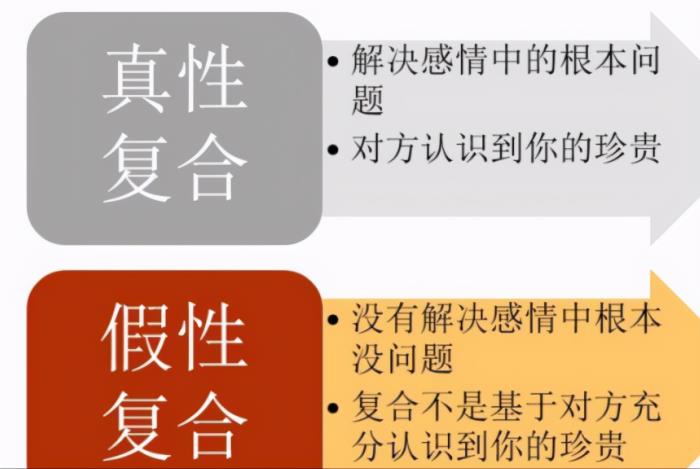 · 假性复合:往往以你主动求对方的方式复合,或者对方稍稍表现后悔你就答应复合,对方没有真正意识到你的珍贵。