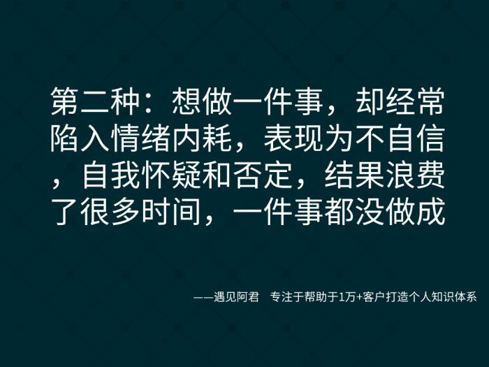 第二种:想做一件事,却经常陷入情绪内耗,表现为不自信,自我怀疑和否定,结果浪费了很多时间,一件事都没做成,这是大多数人管理不好时间的典型原因。