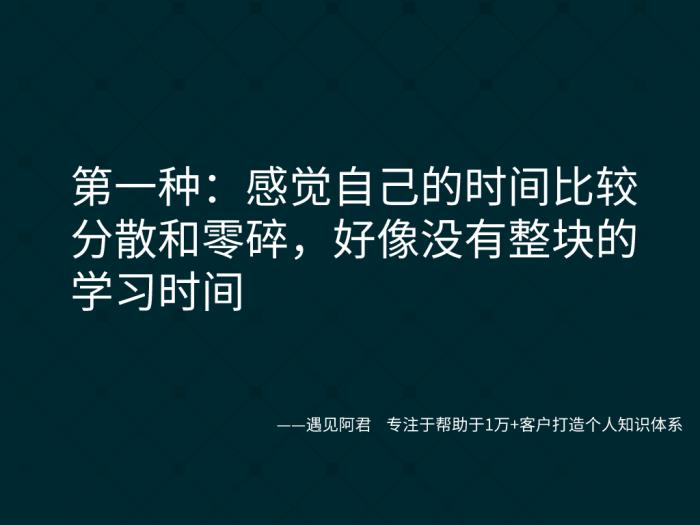 第一种:感觉自己的时间比较分散和零碎,好像没有整块的学习时间,这类情况多见于全职妈妈;