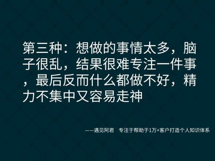 第三种:想做的事情太多,脑子很乱,很难专注一件事,最后反而什么都做不好,精力不集中又容易走神。