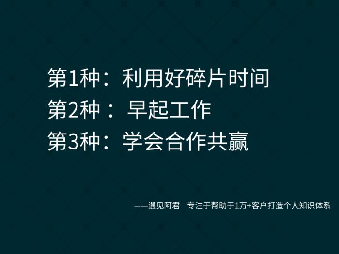 有一些人很擅长利用碎片时间,这里1分钟,那里5分钟,积极攒攒,一天下来,多了1个小时多,这是很了不起的本事。