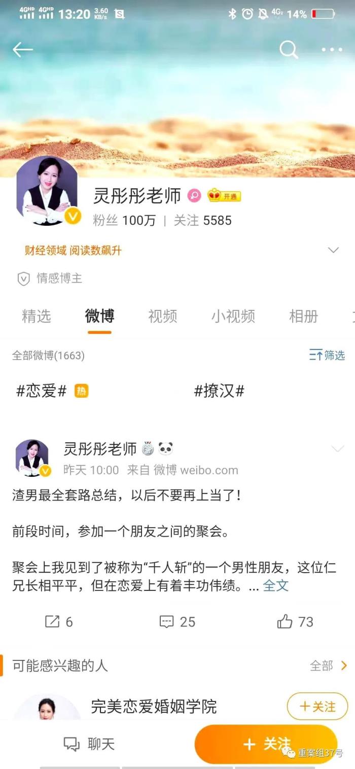 截至目前,灵彤彤恋爱学院微信公众号、微博、抖音号等均已被屏蔽,现已无法查看。此前其微博粉丝数显示为100万。
