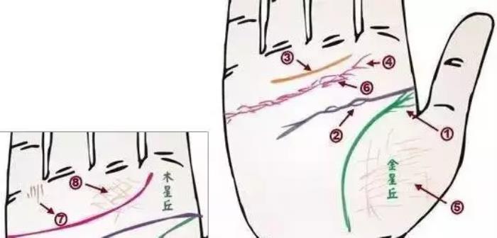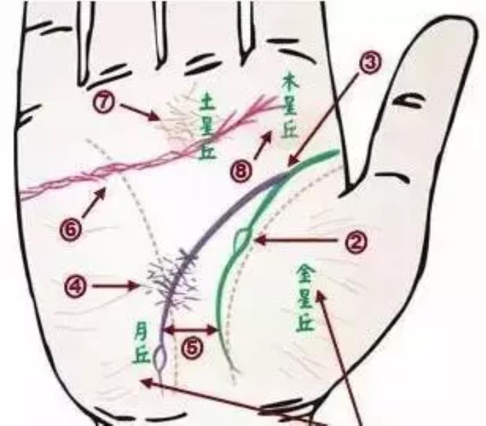 反之,若感情线位于上方,多是腺体类病质疾病,如胃弱、风湿等。金星丘的隆起部分过硬,静脉曲张(青筋浮现)。中指根部现出星形或灰色变雾状。
