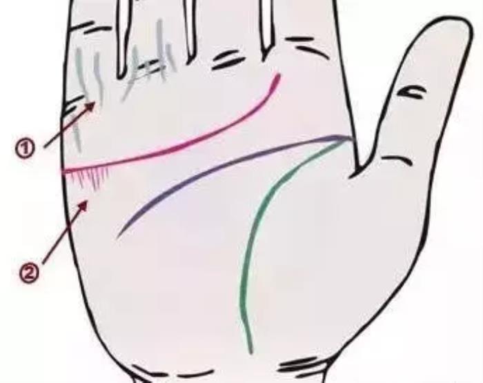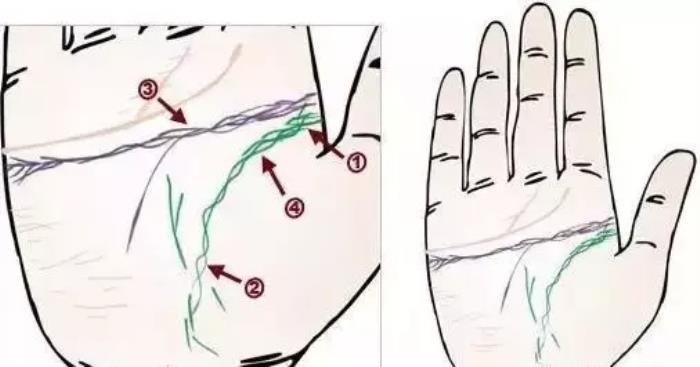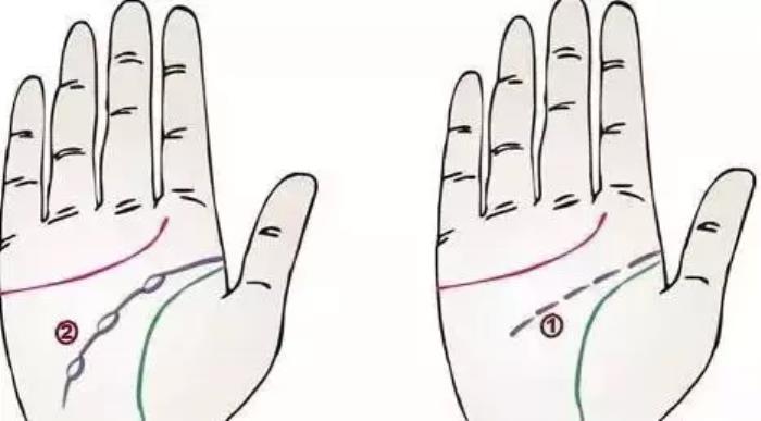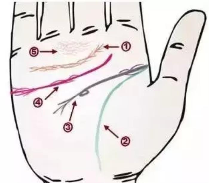 脑震荡或严重颈椎异常,手弯曲如猿手或鹰爪。智慧线断口多,主头痛症,也往往表示记忆力衰退。智慧线上多岛,主脑部疾患。