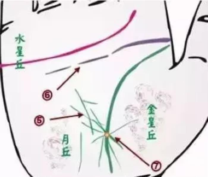 感情线开始端呈穗状,通常是结核症候。金星带和感情线交叉,性欲强,易兴奋,也是肺结核症候。金星丘和月丘发育差,肌肉瘦薄。