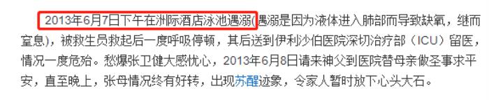因为在2013年时,曾传出张卫健母亲在游泳池中溺水,幸好捡回了一条命。
