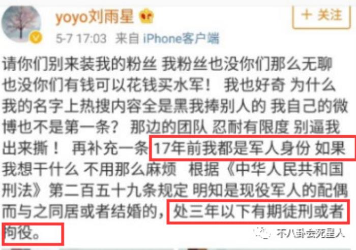 直到2018年5月7号,刘雨欣方忍无可忍,发布微博公开怼,而且还提到了刘雨欣17年前的特殊身份……