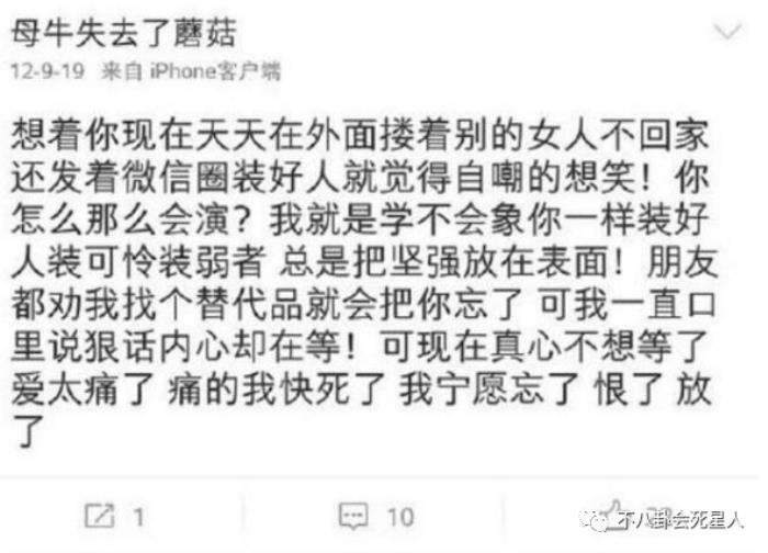 这时候刘雨欣被网友扒出小号,已经结婚生女,为了他三年打掉两个孩子,引产一个,而渣男在12年还在出轨。