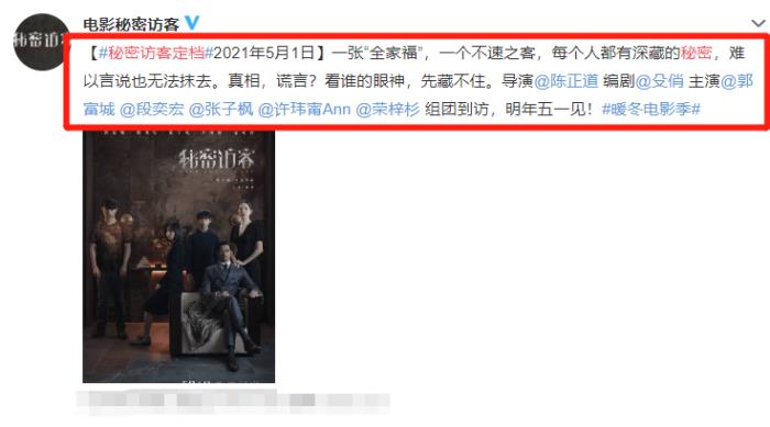 这部电影就是《秘密访客》,这部电影在之前还是引起了很高的关注度的,这部电影的主演阵容还是非常强大,而且这部电影还是陈正道担任导演,所以也是让很多小伙伴都无比期待。