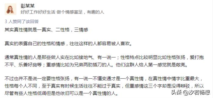 有位网友回答说:真性情就是一真实,二性格,三情感。