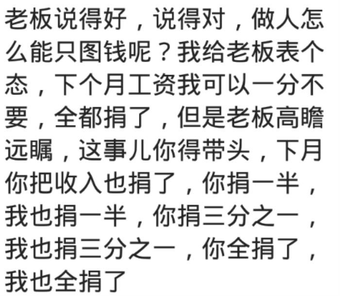网友:老板:最烦你们这些一上来就谈钱的。员工:我不跟你谈钱,难道跟你谈心吗?