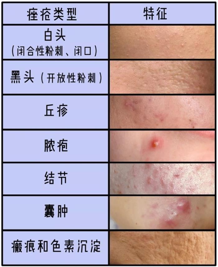 不过我们先了解下烦人的痘痘的种类,以便大家可以很快地区分自己的痘痘处于哪个阶段(长痘的同学要好好看哦~)