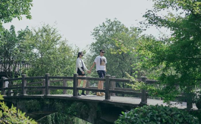 微博上,张常宁配上了两人之间的几张合照,有穿着情侣装漫步在闹市街头的,也有在房间里自拍的、当然散兵最喜欢的就是,两人牵手一起走在桥上的画面,在绿树环绕之下,确实显得很美。这些画面,说明两人还在热恋中一样哈。