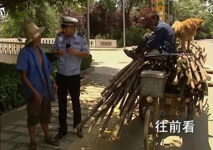 谭警官问骑着三轮车的老大爷,“你这样拉货,家人人不担心你吗?你爸爸不管你吗?