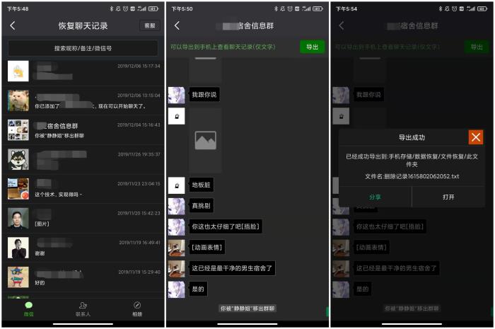 点开账号记录就能看到已删除的微信聊天记录,即便懂王删除的群聊聊天记录依旧保存在手机里,而且聊天记录还支持生成文本后导出。