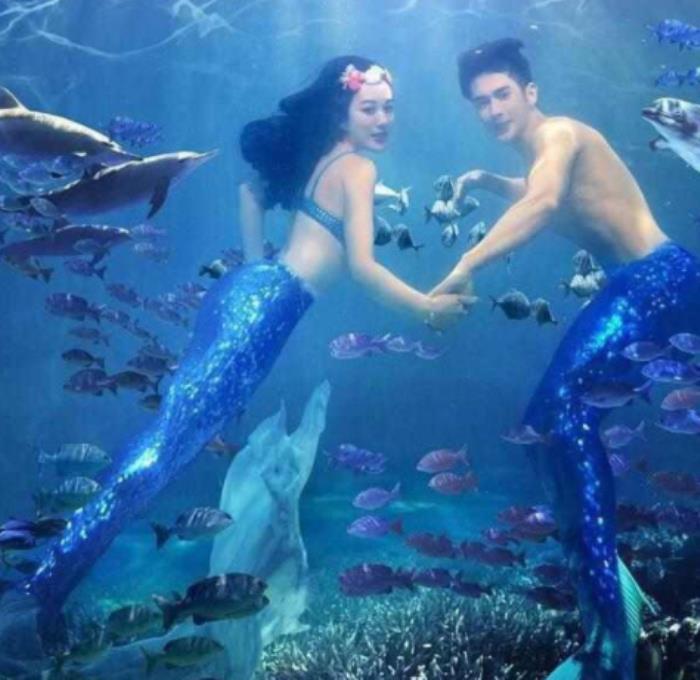 钟丽缇和张伦硕的婚姻刚开始是大家不被看好的,可是如今看来还是十分幸福的。人家的爱情是都是十分的高调的。图为两位当时的结婚照,在水里拍摄的十分有创意。希望你们能一直幸福下去吧。