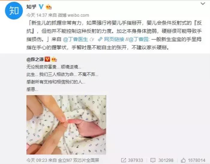 知乎也发文:“新生儿的抓握非常有力,如果强行将婴儿手指掰开,婴儿会条件反射式的‘反抗’,但他并不能控制这种反射的力度。加之本身身体脆弱,硬掰很可能导致手指损伤。”