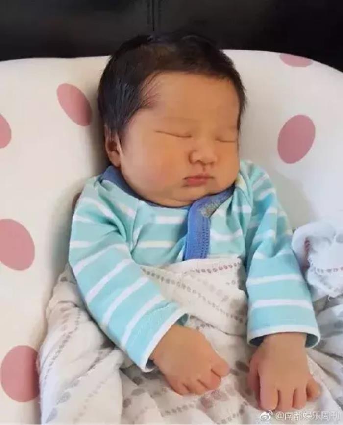 从晒出的婴儿正面照里可以看到小baby小手紧握,处于熟睡状态,十分乖巧。