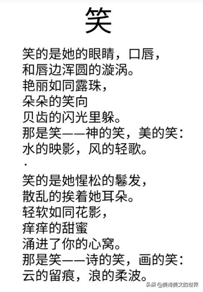 与徐志摩其它的情诗一样,这首诗写得浪漫唯美。在诗中徐志摩用极美的语句夸赞着林徽因的笑容和美丽,当时林徽因已决意不与对方纠缠,所以并没有回这首诗。直到9年后,也就是1931年徐志摩离世前,林徽因在养病时想起了这首诗,也想起了过往的时光,便回了一首更绝的,诗名《笑》。这首诗无论是从意境上还是从遣词上,都算得上是一流的现代诗,其文字之灵动令人叹服,完全不输徐志摩的原诗。让我们一起读一读:
