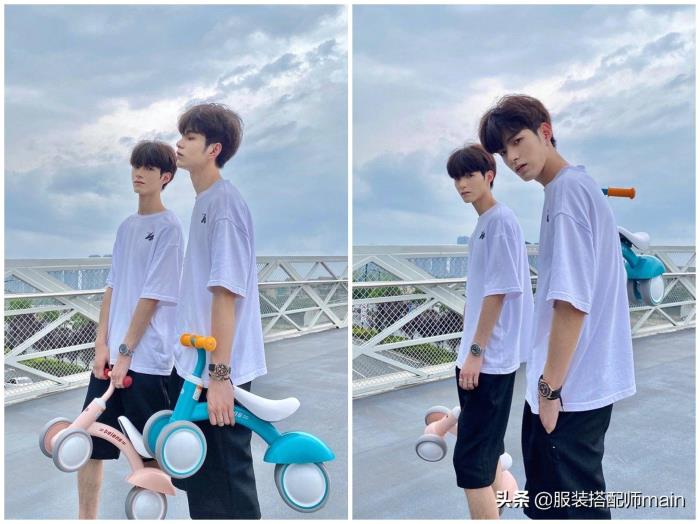 拥有超高的颜值和183cm的高挑个头,双胞胎兄弟子笺和子凛跨界当时尚模特也完全没问题。只见哥俩同穿简约休闲装,看似是配色不统一可实则又形成了高级对比,同样的穿衣风格不同的搭配组合,不知你觉得谁驾驭得更出色?
