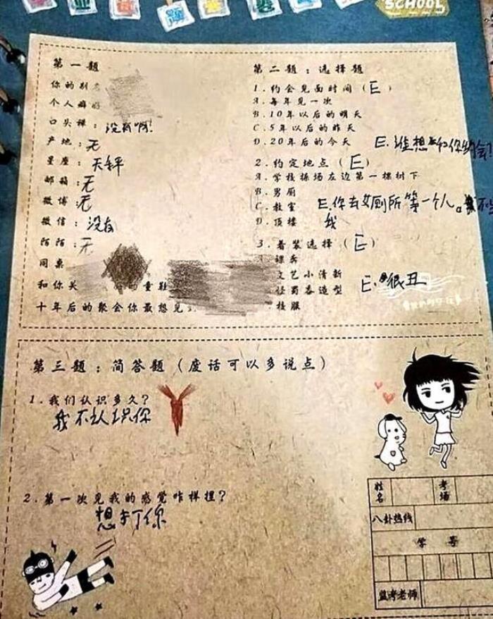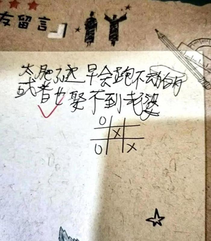 这位老师说,自己的班里有一位矮矮胖胖的小男孩,跟自己哭诉:自己毕业的留言册上,被其他同学写满了各种讽刺和诅咒的话语。从老师晒出的图片,确确实实的可以看得出来,这些学生的字里行间都是满满的恶意。