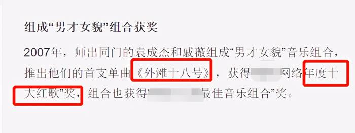 后来戚薇在歌唱领域小有成就,凭借歌曲《外滩十八号》获得某音乐榜年度十大红歌奖。