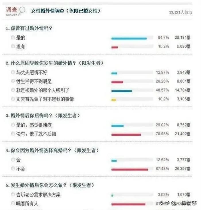 这是一份关于女性婚外情的调查报告,对于图中的数据,你有什么看法?你是他们其中的一员吗?