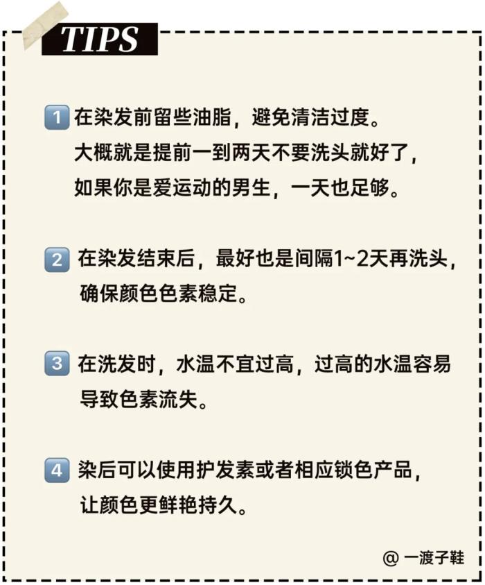 当然,我们好不容易染好的发色肯定是希望它能保持久一点。所以我也在最后整理了一些延缓褪色的小技巧,准备染发的兄弟可以稍微存一下。