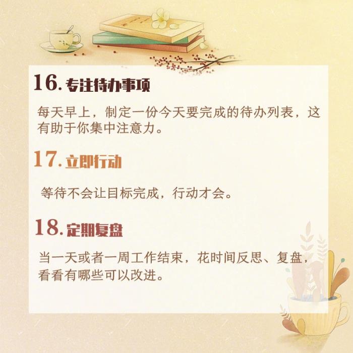 每天早上,制定一份今天要完成的待办列表,这有助于你集中注意力。