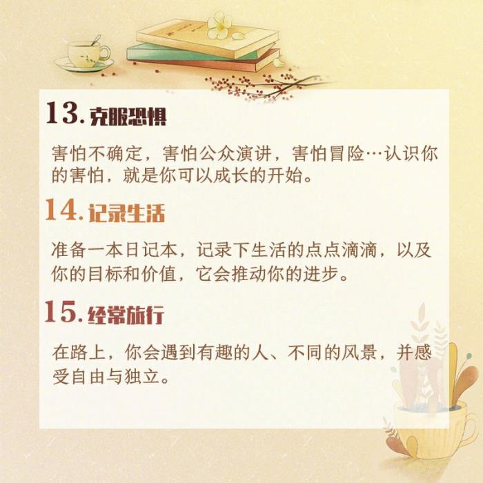 一旦开始,就不要半途而废,你的自信心会一点一点建立起来。