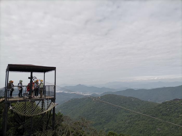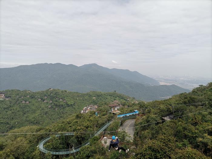 鸟巢揽胜观景台就在这街巷旁,这里还是飞跃丛林开始的点,所以在这里除了看(鸟巢酒店)风景,还能看别人玩飞跃,飞跃丛林是景区里自费的游玩项目,价格好像是每位198元,看着就比较刺激,如果喜欢想尝试可以现场买票,我在这儿看风景不到两分钟,但是看别人玩看了不下十分钟。