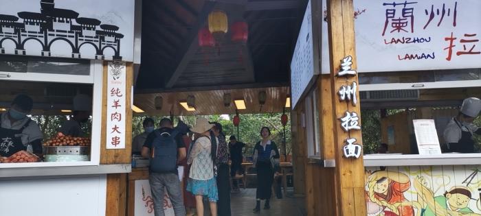 小吃街没啥特色,跟国内景区内的小吃街大同小异,都是价格昂贵味道一般的店,比如一碗海南伊面或者水饺,在市区只需要十来块在这里就要涨三倍,我原本打算点个水饺,想着不太饿就只要了根二十块的火腿。