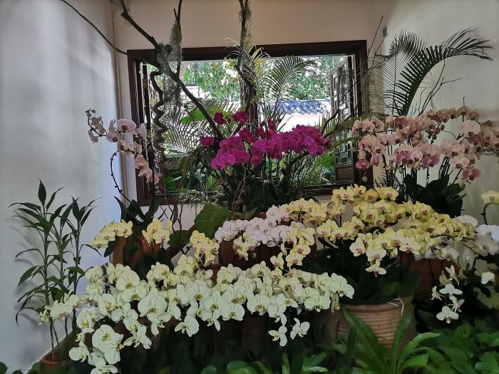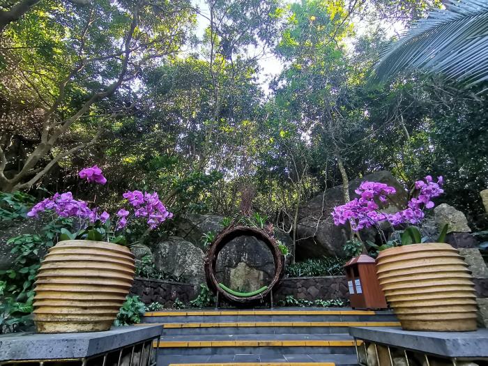 继续往前我们还看到了一栋古风的房屋,屋子里都是各种各样的兰花,煞是好看,还有个小庭院,进去看了两眼就出来了,我们还走过了一座拱桥,到了野生槟榔林里,因为太过幽静不敢再往前,只在小道上拍了几张照片便从匆匆离去。