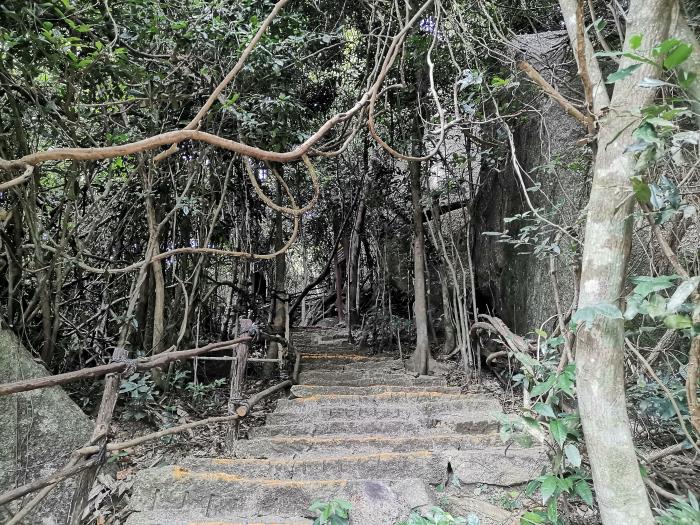 栈道其实是一条石阶路,都是由一块块石头砌成,小道两旁都是热带树木,这种才有身处森林的感觉,而很多一日游的导游都不会带游客来这里,毕竟这里没有太多的自费项目,所以来亚龙湾尽量别报一日游吧。